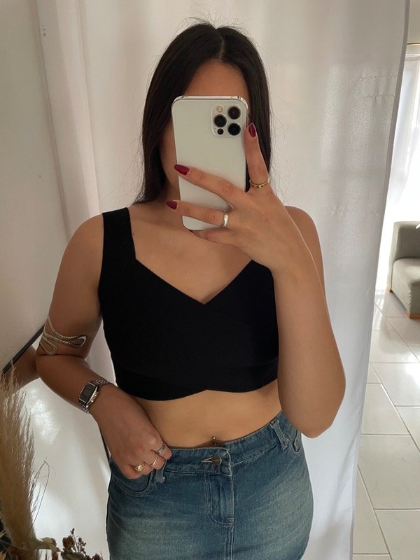 Top hilo cruzado negro