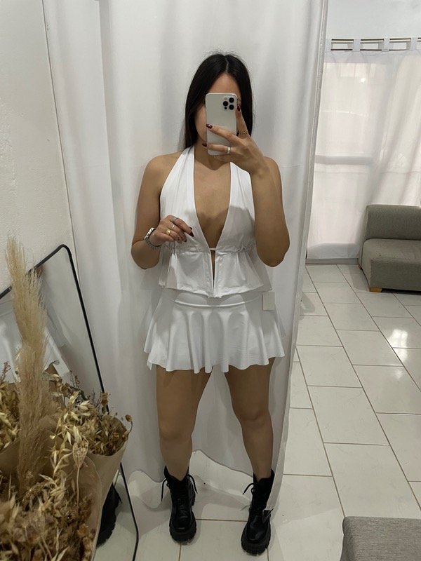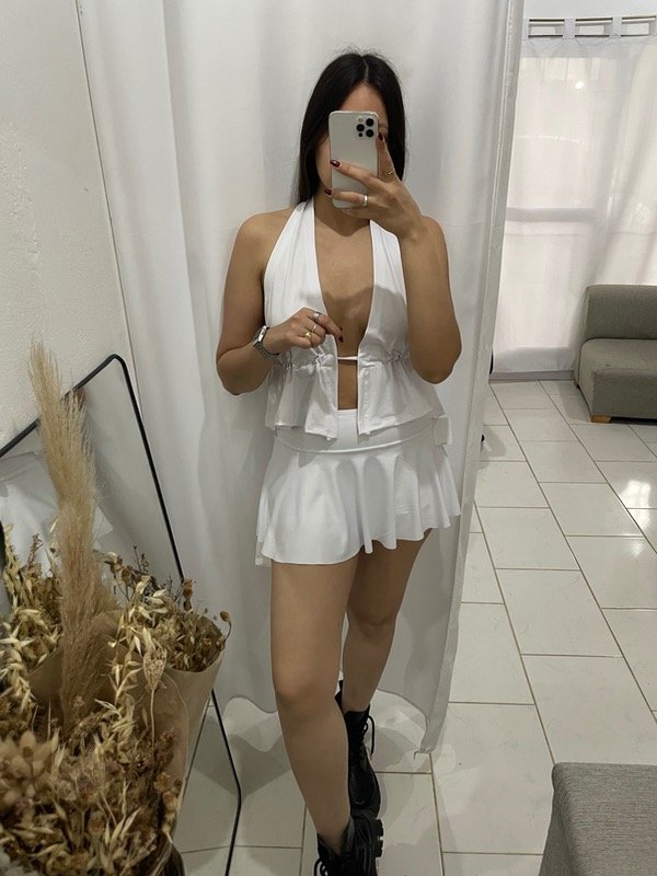 Short pollera microfibra Blanco
